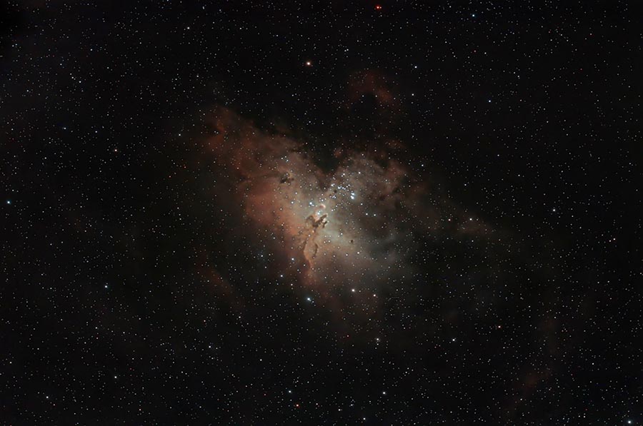 Magnitude 6.4; Constellation Serpens; 35 x 28 arc minutes in size. |