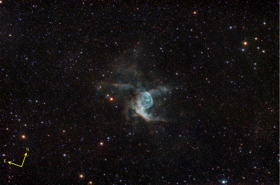 Known as The Duck Nebula or Thor's Helmet; Constellation Canis Major; 8.0 x 6.0 arc minutes in size. |