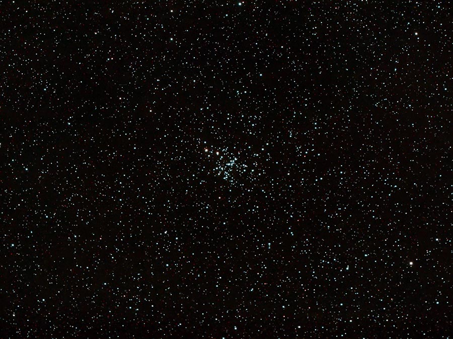 Mag. 6.2 open cluster in Puppis with 80 stars 8th magnitude and fainter. Wide field shot with Opolong L-eNhance filter. |