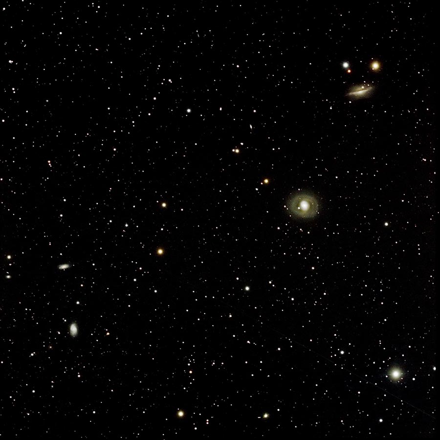 M77 mag. 9.0, NGC1055 mag. 11.1, NGC1087 mag. 11.0, NGC1090 mag. 11.9 and NGC 1094 mag. 13.8. All in the constellation Cetus. |