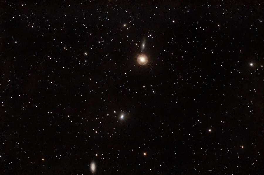 Galaxies in Ursa Major. NGC3733 - mag. 12.4, spiral, 3.4 x 1.1 arcmintues in size. NGC3738 - mag. 11.2, irregular, 2.2 x 1.6 arcminutes in size. NGC3756 - mag. 11.5, spiral, 1.9 x 1.0 arcmintues in size. Fainter galaxies brighter than magnitude 16 are labeled, too. |